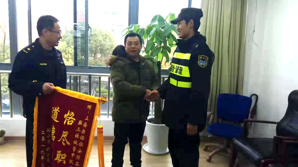 2019年3月18日下午,市民孫先生將一面繡著“恪盡職守,道德高尚”的錦旗送到了三林城管隊(duì),感謝宗保特保隊(duì)員幫他找回孩子。