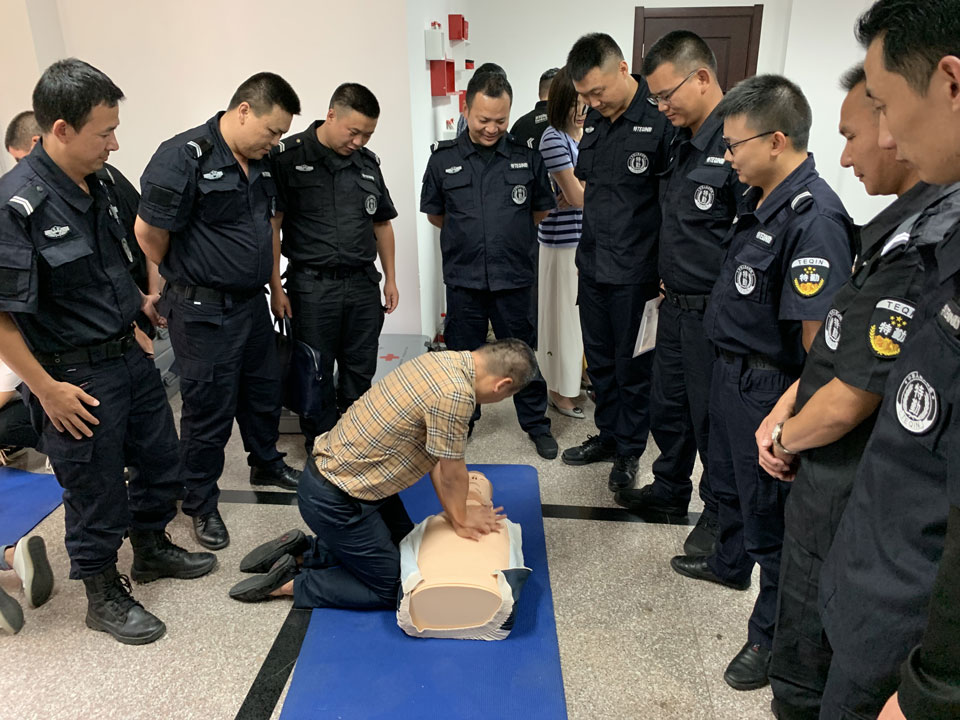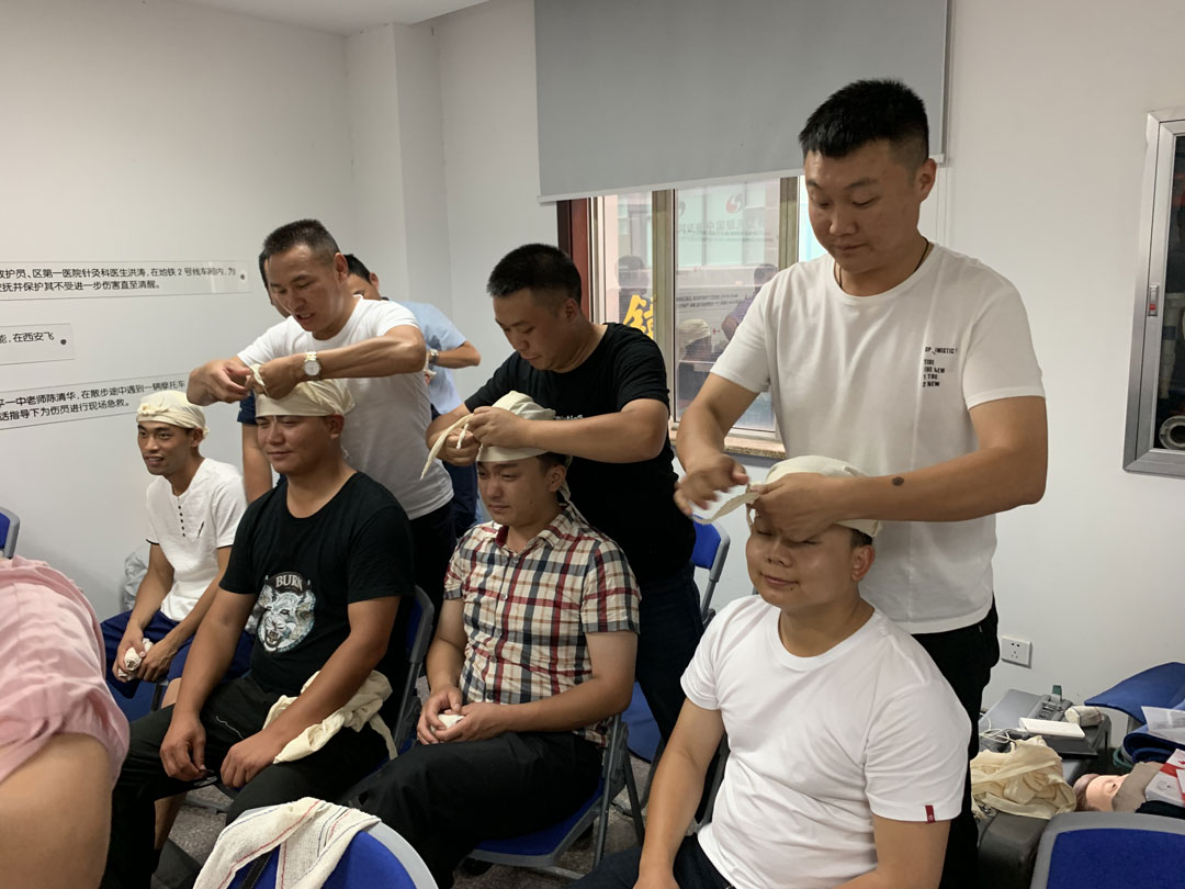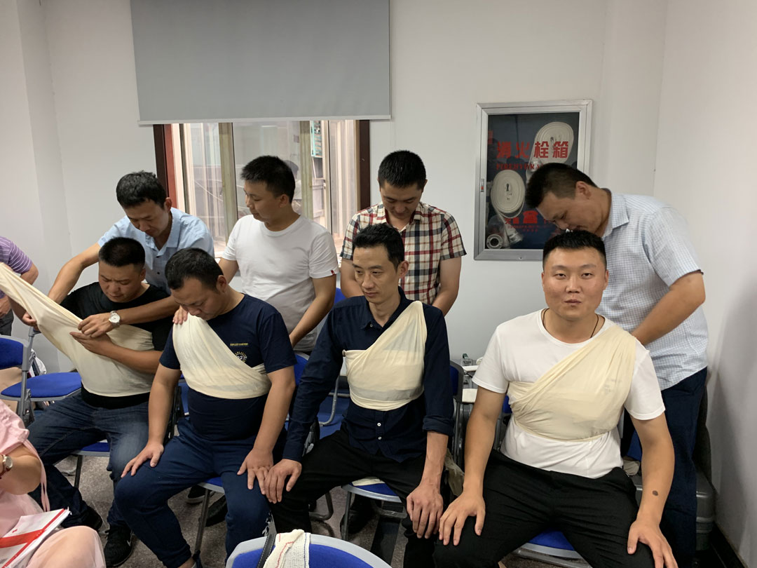 培訓(xùn)采取理論講解和示范操作相結(jié)合的方式進行,參訓(xùn)人員學(xué)習(xí)應(yīng)急救護基礎(chǔ)理論知識,進行心肺復(fù)蘇、氣道異物梗塞現(xiàn)場急救方法、簡單止血包扎、意外傷害和突發(fā)事件等應(yīng)急救護的基本技能操作。培訓(xùn)結(jié)束后,進行理論和實操考試,對考試合格人員頒發(fā)了救護員證。