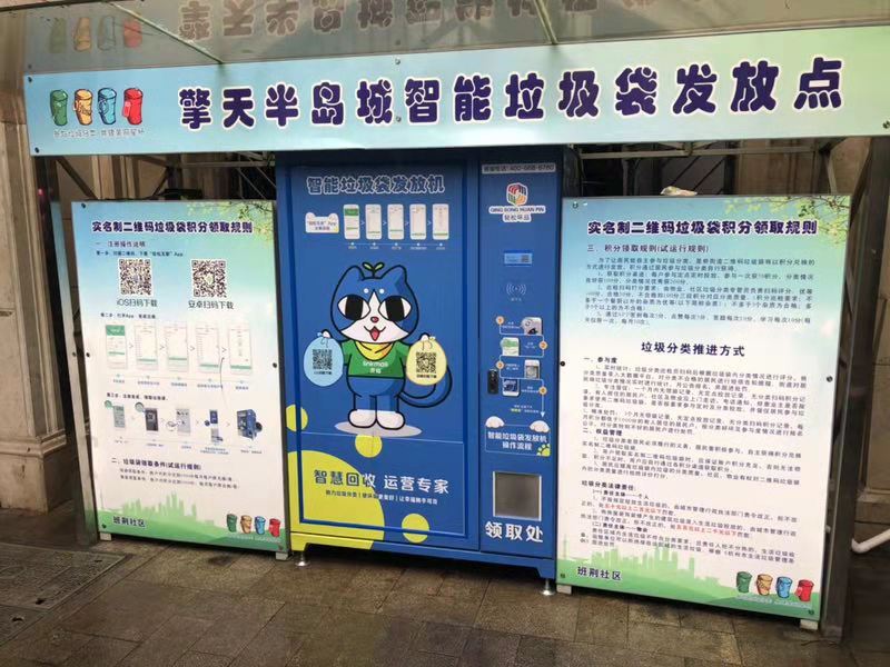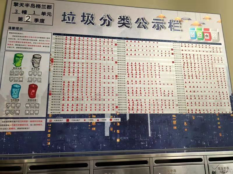 宗保公司一行首先來到擎天半島小區(qū)參觀學習。走進小區(qū),就感受到濃厚的宣傳氛圍,宣傳欄、公開欄、公示欄、橫幅,垃圾分類內(nèi)容處處可見。靳主任介紹街道引進第三方科技公司,定制開發(fā)垃圾二維碼追溯系統(tǒng);小區(qū)居民通過專用設備,實名掃碼領取垃圾袋,實現(xiàn)自行分類,每一個垃圾袋都可以追溯到具體門牌號;物業(yè)保潔人員檢查分類情況,運用手機掃碼評分;居委會張榜公示樓道各戶分類情況,切實做到了街道主推、社區(qū)主導、物業(yè)主責、居民主分的“四級責任體系”。