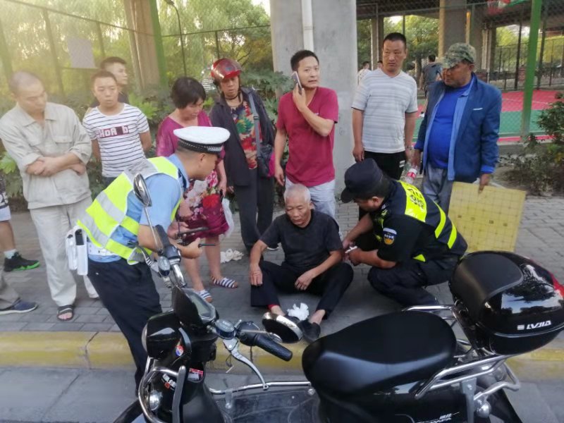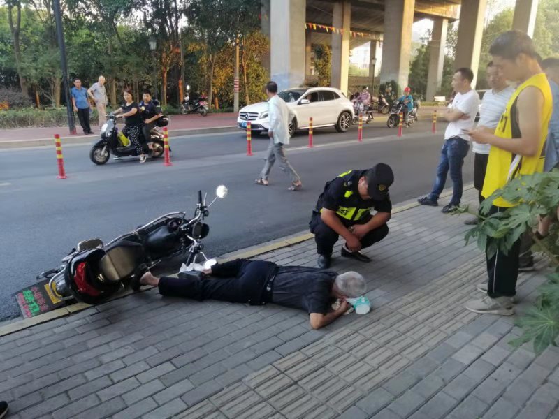 當(dāng)天下午16:50左右,小張像往常一樣緊張有序地執(zhí)勤,當(dāng)巡查到紅豐立交橋崗位時(shí)看到前面一群人圍觀,第一反應(yīng)可能出事了。小張急忙走上前,只見(jiàn)一位大爺騎電車摔倒在地。
