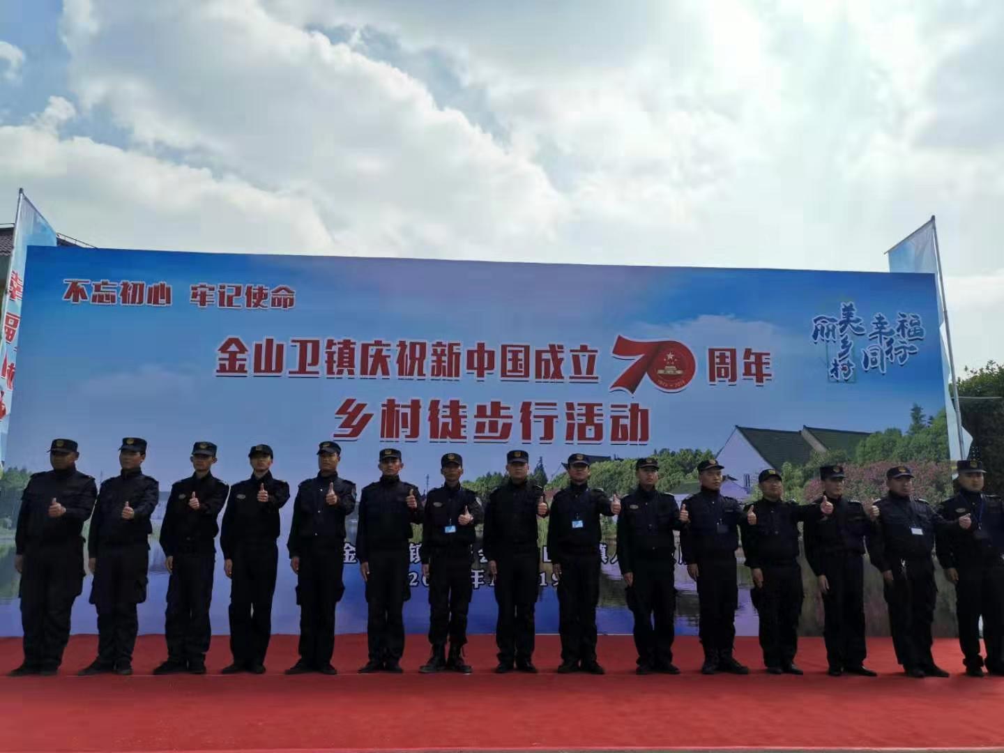 為慶祝新中國(guó)成立70周年,使廣大群眾切身感受美麗鄉(xiāng)村建設(shè)成果,增強(qiáng)大家建設(shè)美麗家鄉(xiāng)的信心和力量。10月19日上午8時(shí),金山衛(wèi)鎮(zhèn)隆重舉行“不忘初心牢記使命 美麗鄉(xiāng)村 幸福同行”金山衛(wèi)鎮(zhèn)慶祝新中國(guó)成立70周年鄉(xiāng)村徒步行活動(dòng)。宗保公司擔(dān)負(fù)活動(dòng)現(xiàn)場(chǎng)的安保任務(wù)。