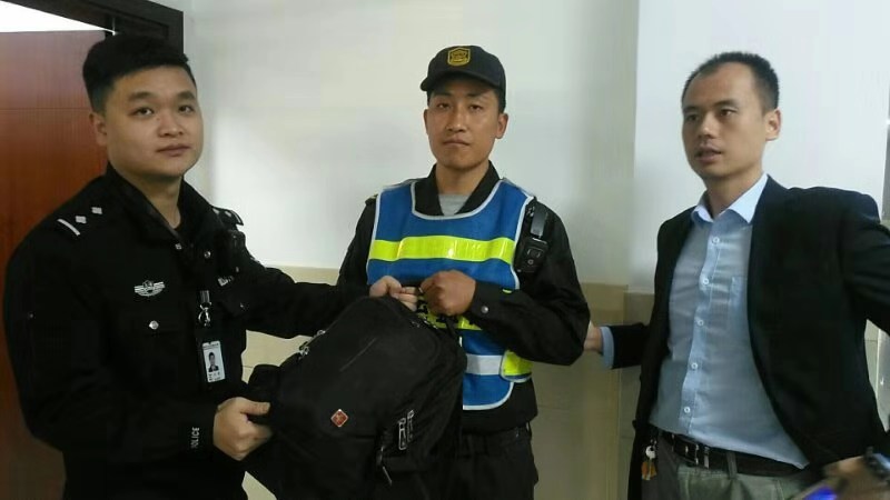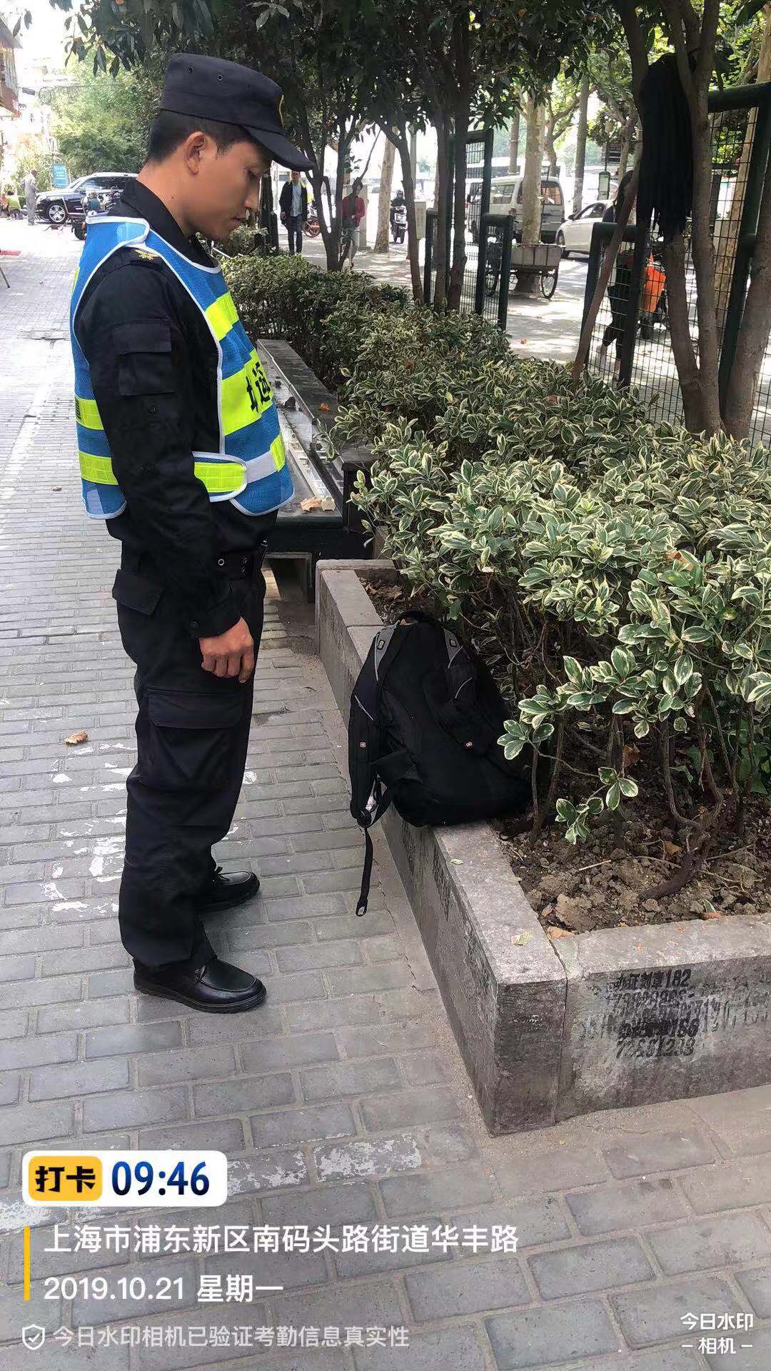 10月15日,陸家嘴綜合管理項(xiàng)目隊(duì)員漆愛(ài)軍,在南泉北路298號(hào)遠(yuǎn)東大廈車庫(kù)出口處擺放違停共享單車時(shí),發(fā)現(xiàn)車筐內(nèi)有 一黑色斜肩包,立即匯報(bào)當(dāng)班組長(zhǎng)梁興帥。梁興帥到達(dá)現(xiàn)場(chǎng)后,考慮到失主應(yīng)該沒(méi)有離開(kāi)多久可能會(huì)返回尋找,就在現(xiàn)場(chǎng)邊執(zhí)勤邊等待,半個(gè)小時(shí)后見(jiàn)無(wú)人前來(lái)認(rèn)領(lǐng),于是將背包送到轄區(qū)警務(wù)站民警手中。