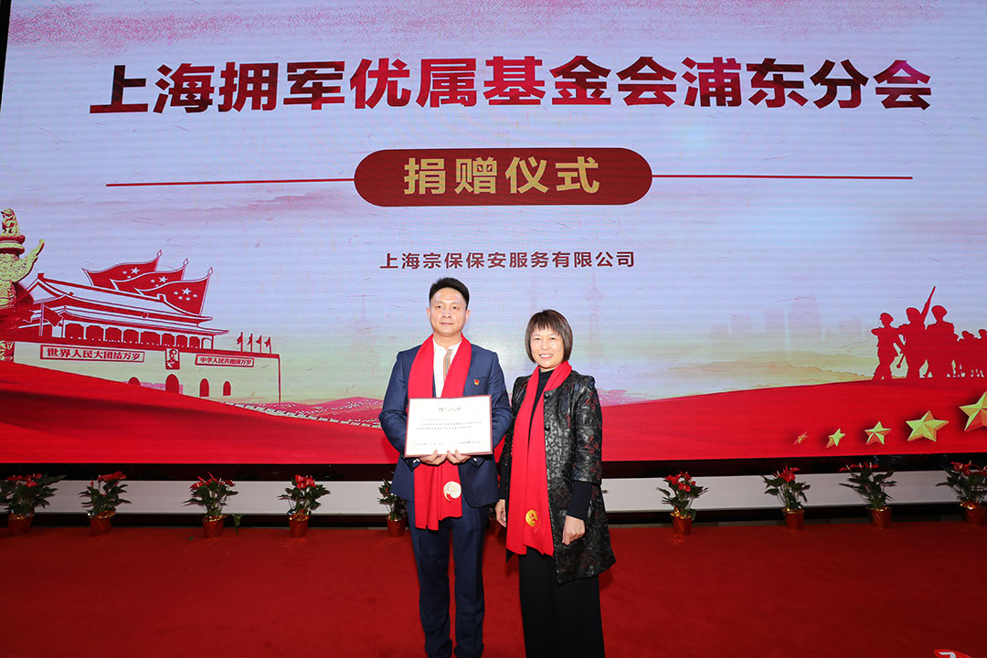 12月28日,在公司2019年年會上,馮中保董事長代表公司向上海擁軍優(yōu)屬基金會浦東分會捐款50萬元,用于幫助解決退役軍人實際困難。