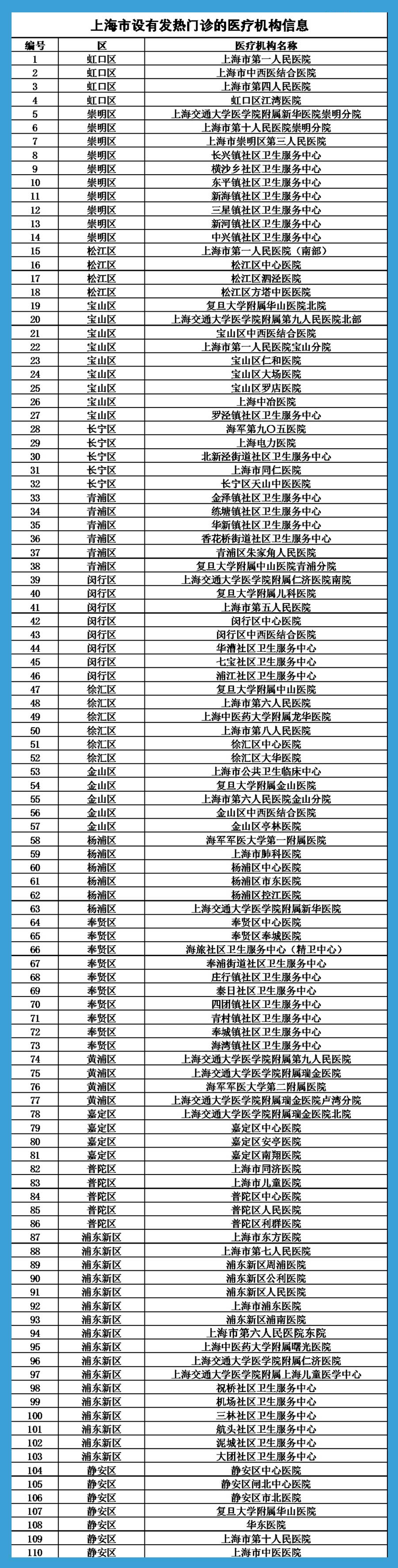公布上海發(fā)熱門診定點醫(yī)院名單