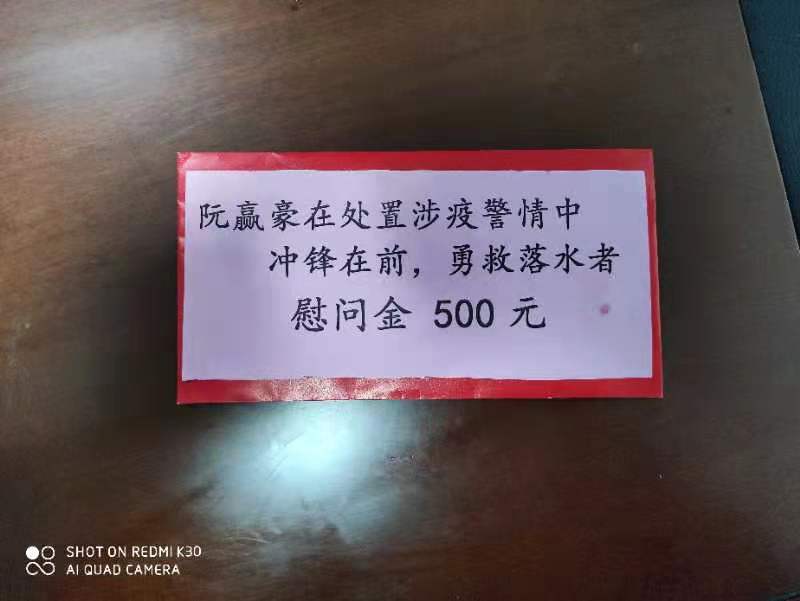 當(dāng)天晚上,派出所領(lǐng)導(dǎo)對(duì)阮贏豪的行為提出表?yè)P(yáng),并發(fā)放了慰問(wèn)金。