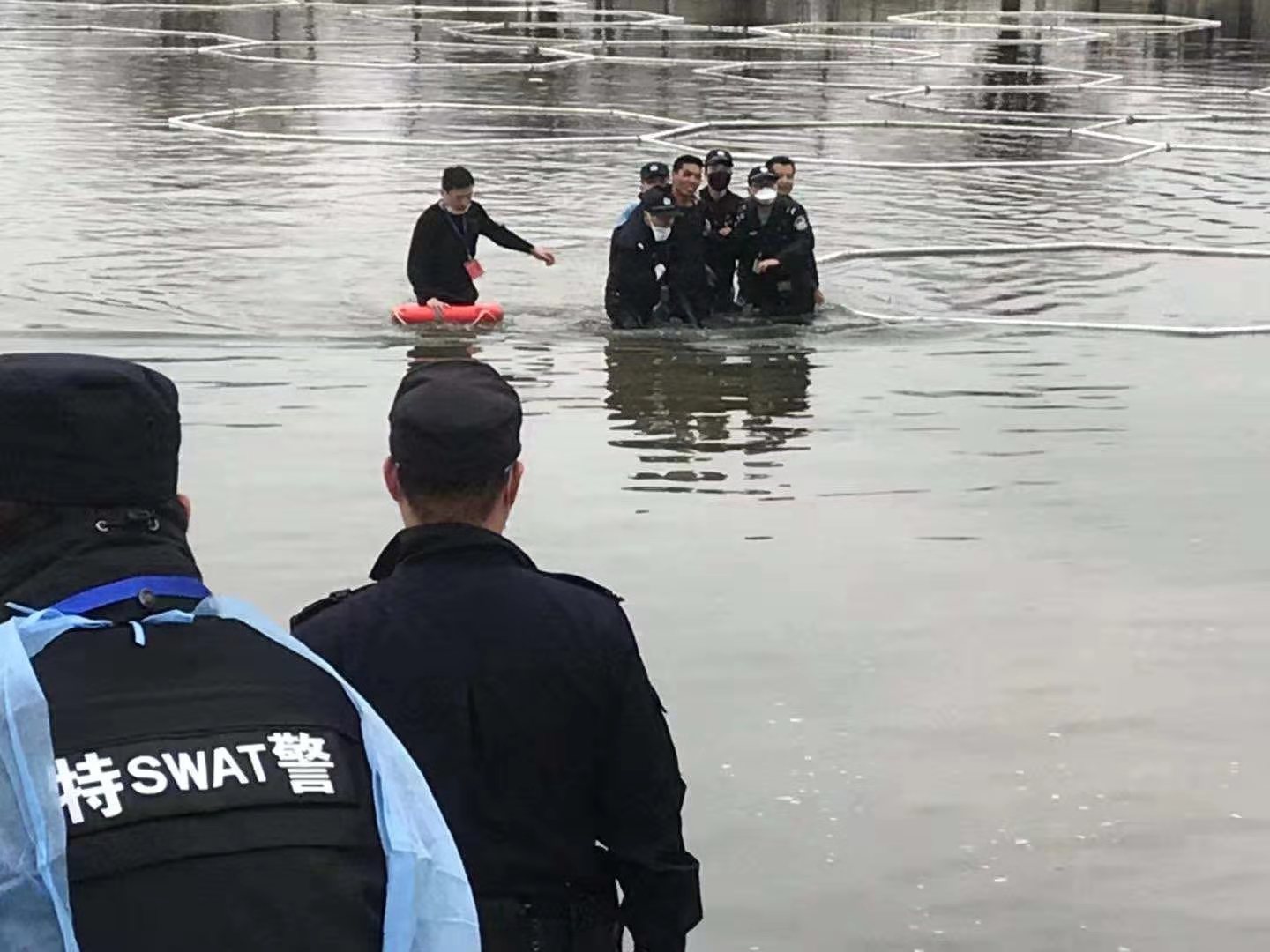 余杭高鐵站緊挨著一個(gè)大型的休閑公園——東湖公園,公園的主體是一個(gè)大型景觀湖,面積10萬(wàn)平方米??梢赡凶釉诰坝^湖邊被攔下,情緒十分激動(dòng),竟一下子跳進(jìn)湖里??拷哆叺暮⒉簧?,但是離岸邊越遠(yuǎn),湖水就越深??梢赡凶硬还懿活櫍瑥街毕蚝虚g走去,情況越來(lái)越危險(xiǎn)。