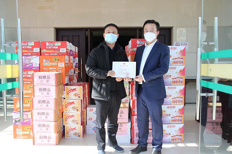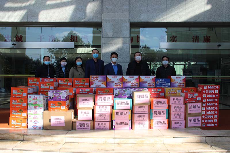 全公司累計捐贈口罩195500只,防護服1225套,護目鏡 1335副,手套12400副,洗手液 75箱,消毒液60箱,消毒濕巾15箱,方便面2320箱,火腿腸650箱,牛奶300箱,餅干280箱,水果100箱,紅牛180箱,奶茶100箱,八寶粥160箱,總價值達1552975元,其中公司員工捐款227163元,其余部分1325812元全部由公司捐出。