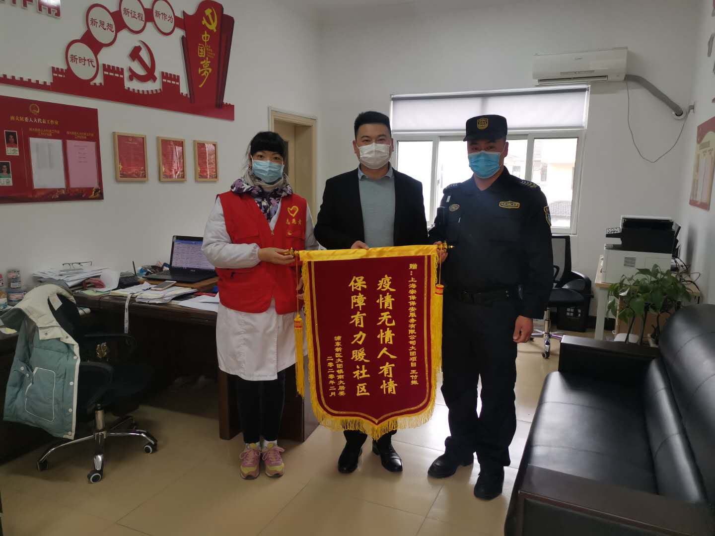 2月23日,閔行區(qū)金匯華光物業(yè)服務(wù)中心送來(lái)一面繡著“眾志成城共抗疫情,不忘初心牢記使命”的錦旗,贊揚(yáng)公司駐閔行交通輔警項(xiàng)目隊(duì)員在疫情防控關(guān)鍵時(shí)期擔(dān)當(dāng)作為,不懼危險(xiǎn),沖在一線的工作表現(xiàn)。