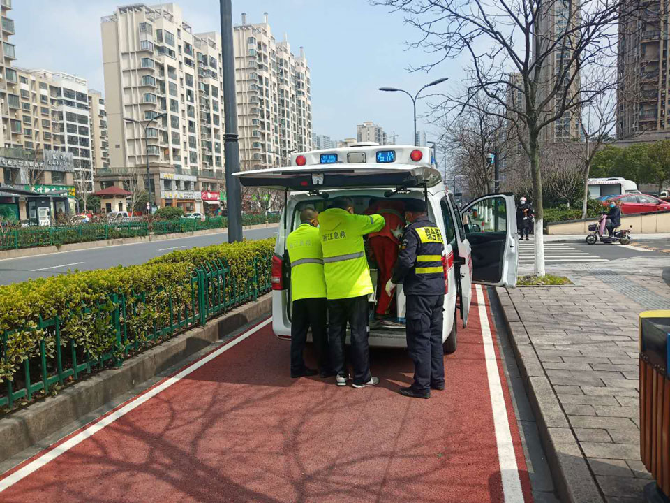 3月7日11點34分,浙江民泰保安公司駐東湖市容蘭江菜場項目保安隊員李亞洲、俞建農(nóng)在巡邏中發(fā)現(xiàn)一位保潔大爺昏倒在地上,旁邊圍觀人員無人上前。面對倒地的老人,兩位隊員沒有任何猶豫,急忙上前將大爺扶起,詢問狀況,查看有沒有受傷,同時撥打120急救電話。120救護車到達后,兩位隊員主動幫助醫(yī)護人員把保潔大爺攙扶上救護車,隨后兩名隊員繼續(xù)巡邏。