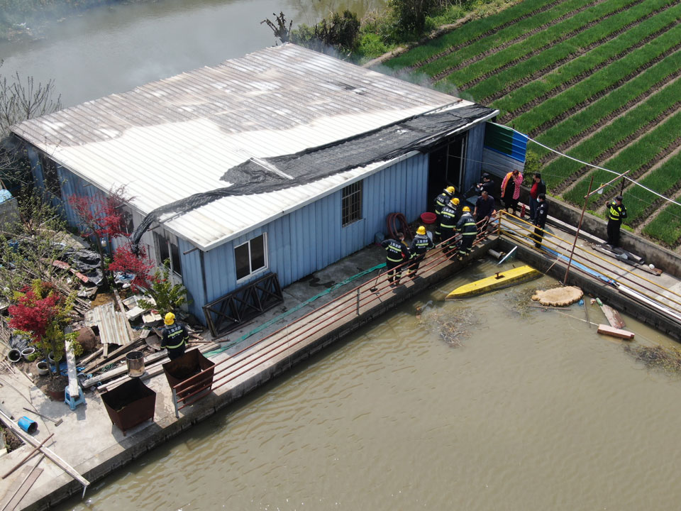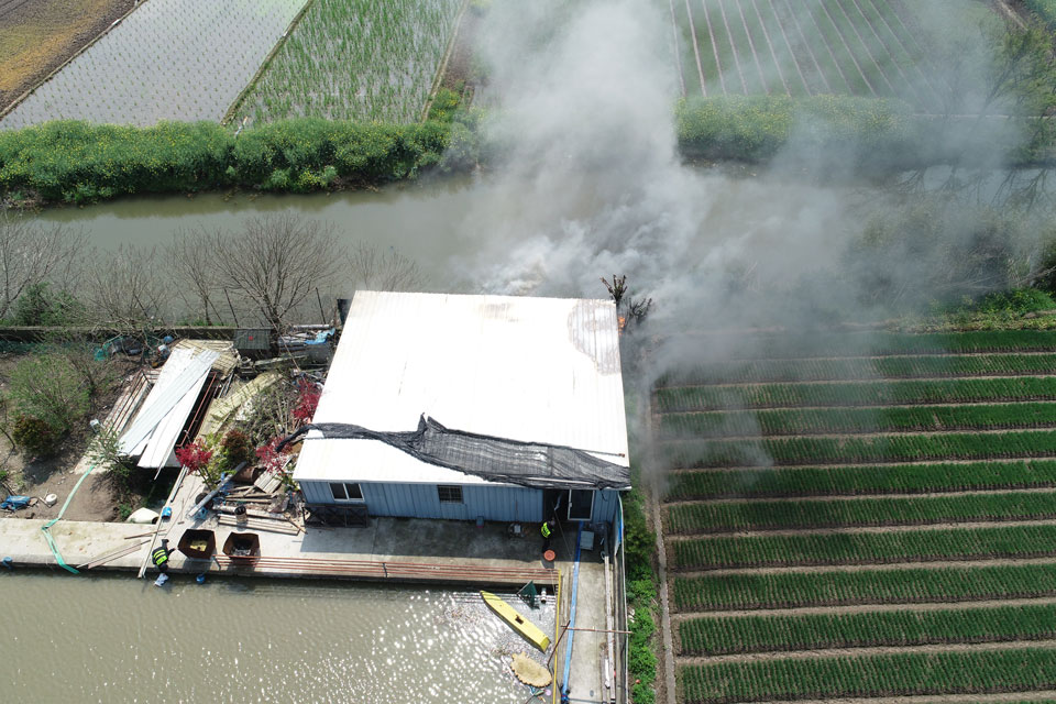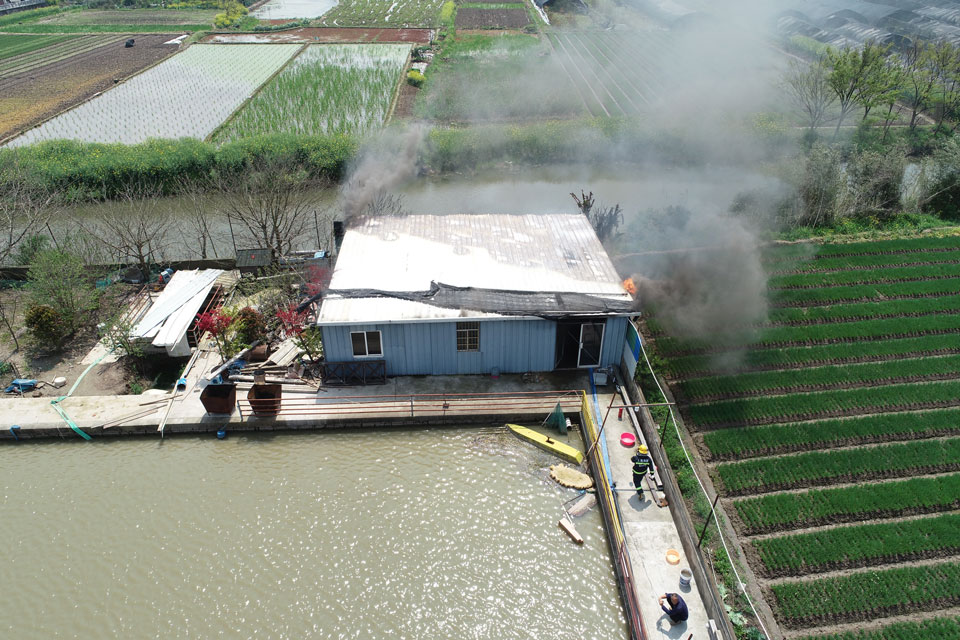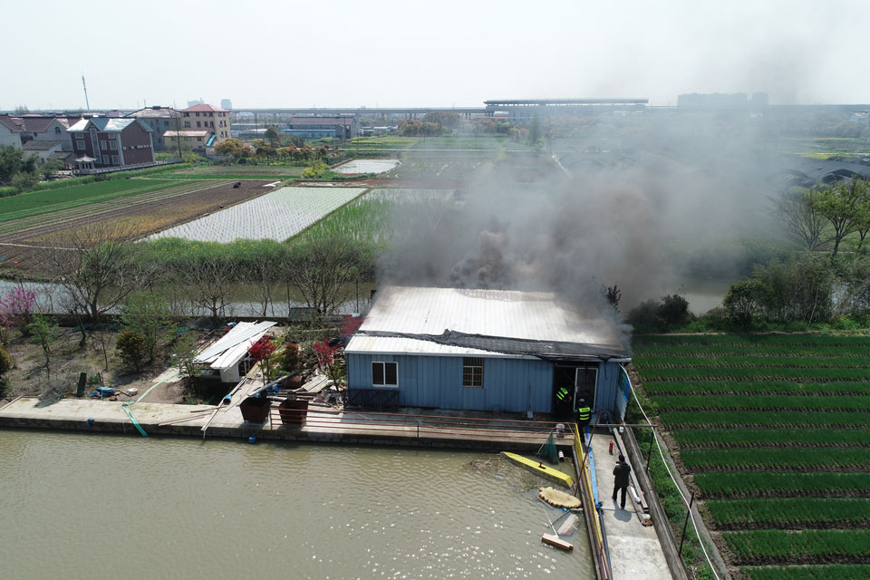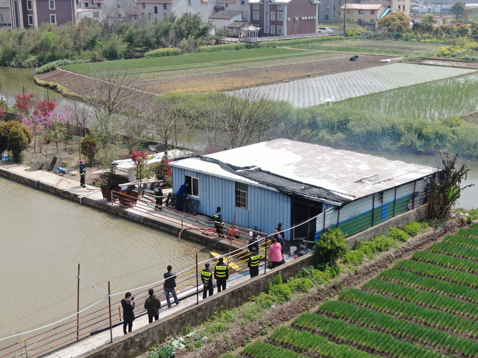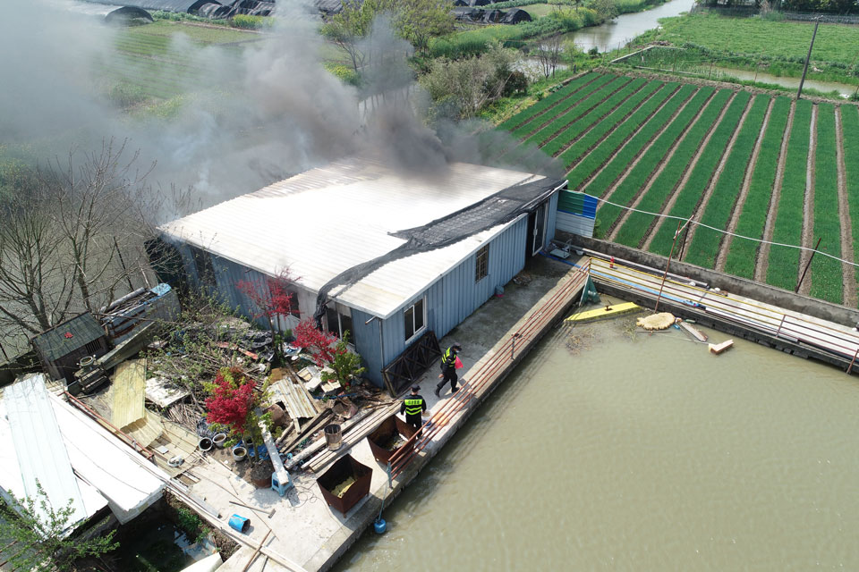 4月1日上午,宗保公司的無人機(jī)飛手王凱奇、王鵬飛在浦東新區(qū)宣橋鎮(zhèn)一地塊上空執(zhí)行無人機(jī)三維建模航拍任務(wù),無人機(jī)在返航過程中發(fā)現(xiàn)該地塊有一處臨時搭建的房子冒著濃煙?!安缓茫i飛,稻田旁邊的房子像是著火了,趕快通知地塊看守的隊員先去看看情況。”王凱奇一邊穩(wěn)穩(wěn)地操控著無人機(jī),一邊焦急地對身邊的王鵬飛說。