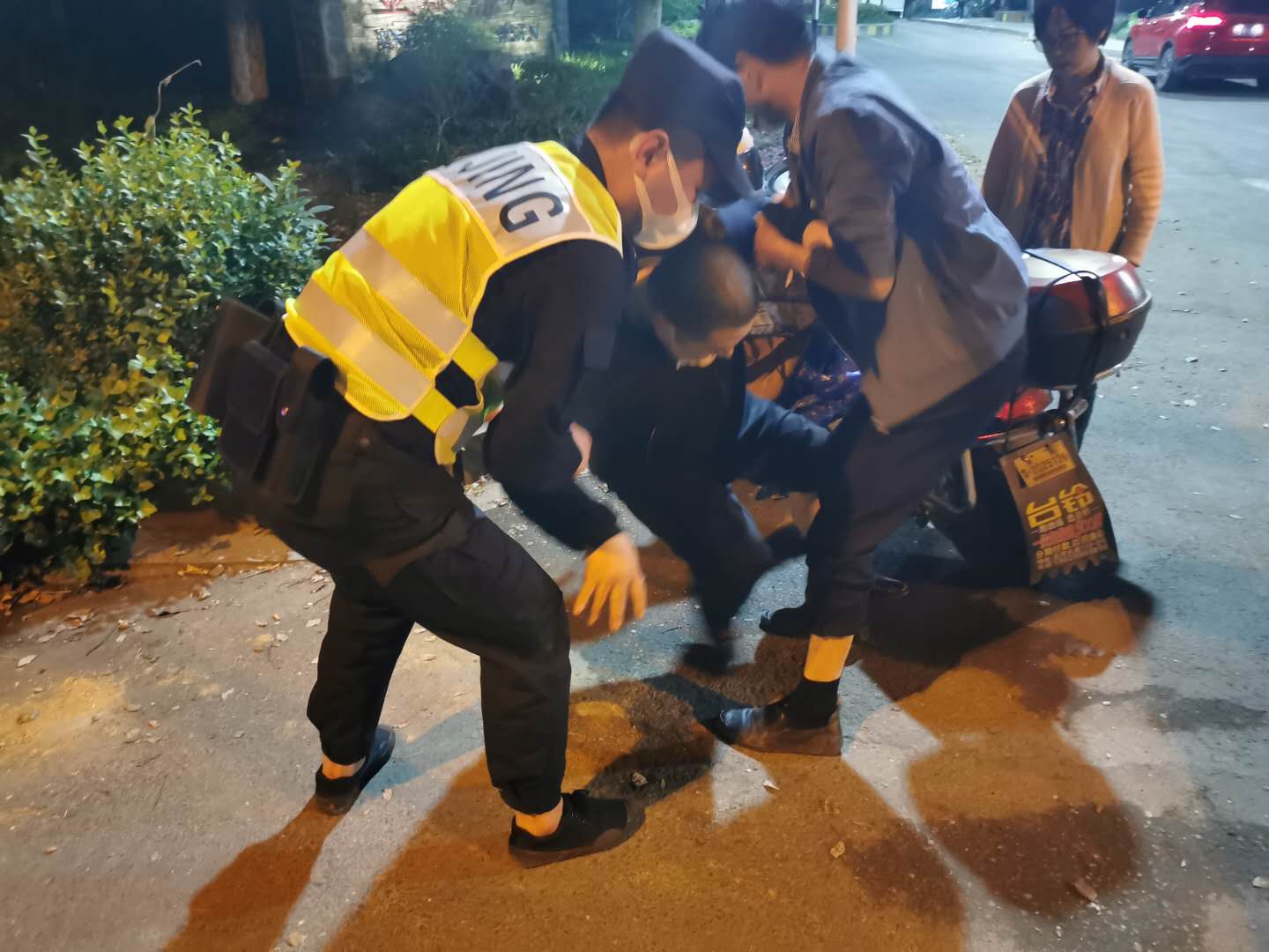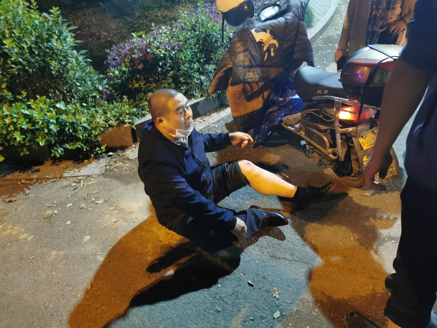 4月25日20:55,民泰公司駐閑林輔警項(xiàng)目隊(duì)員楊有福、宋昆鵬巡邏至天目路金都雅苑小區(qū)出口時(shí),看到一位大叔坐在地上,面露痛苦之色,旁邊還有一輛倒在地上的電瓶車(chē)。兩人趕緊上前,攙扶大叔起身的時(shí)候,檢查發(fā)現(xiàn)大叔的腳不能正常用力著地,腳踝受傷嚴(yán)重,膝蓋也有些許擦傷。