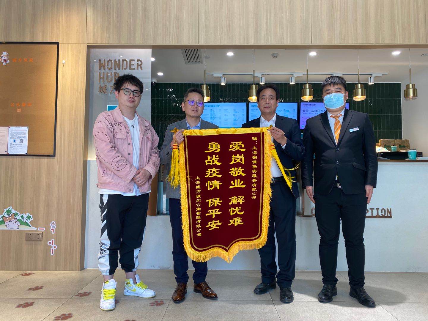 4月28日下午,上海城方城閔公寓管理有限公司總經(jīng)理金義星將一面寫有“愛崗敬業(yè)解憂難,勇戰(zhàn)疫情保平安”的錦旗送到上海宗保保安服務(wù)有限公司王書劍經(jīng)理的手中,這面錦旗是甲方對(duì)宗保公司疫情防控工作最好的認(rèn)可和贊許。