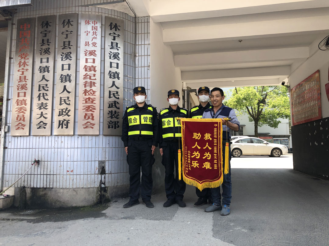 由于當(dāng)天晚上三名隊(duì)員是下班外出,沒有穿工作服,也沒有亮明身份。老先生并不知道提供幫忙的是誰,事后經(jīng)多方打聽才知道是宗保公司駐黃山休寧溪口市容的保安員,于是出現(xiàn)了本文開頭的一幕。