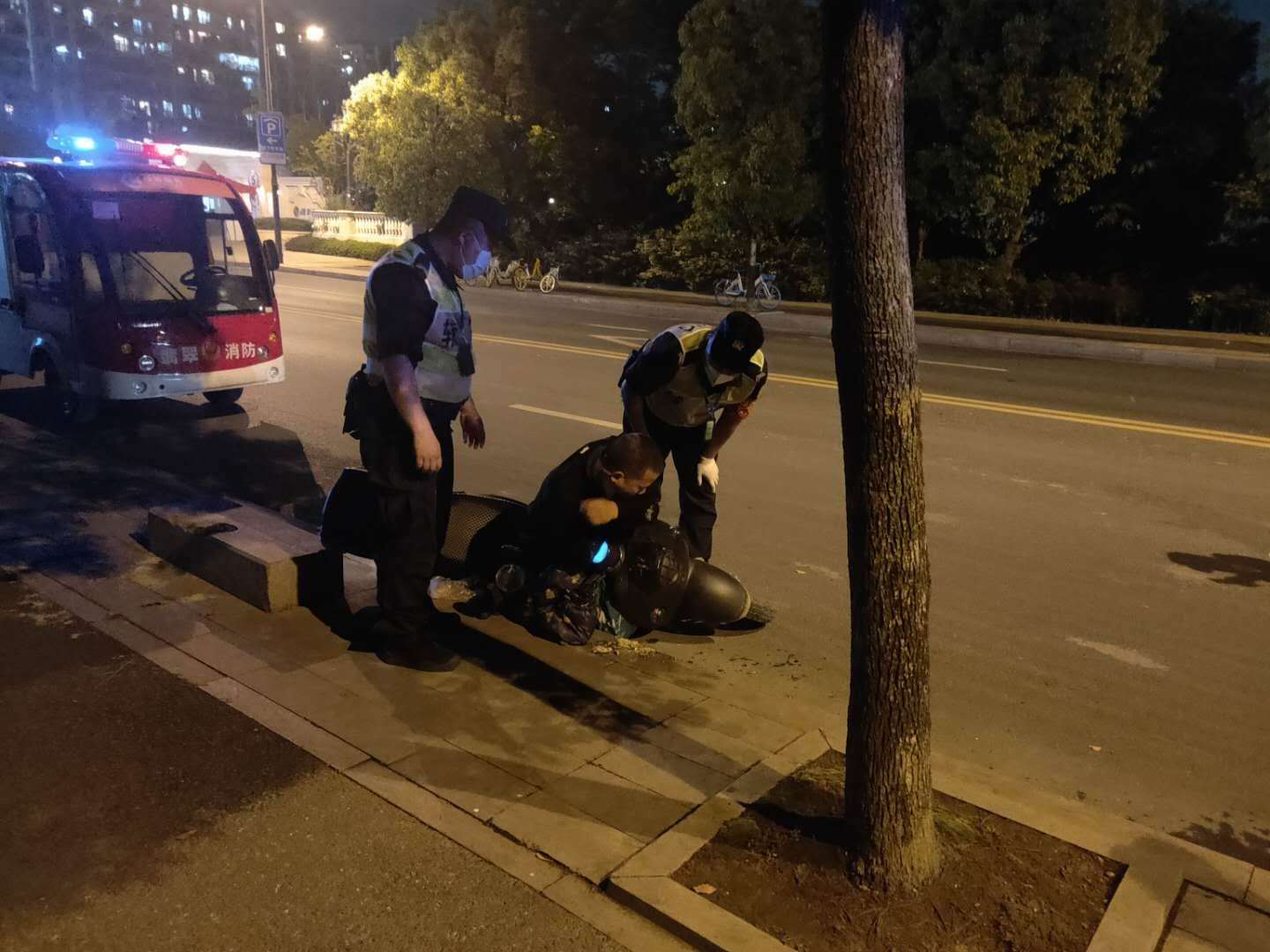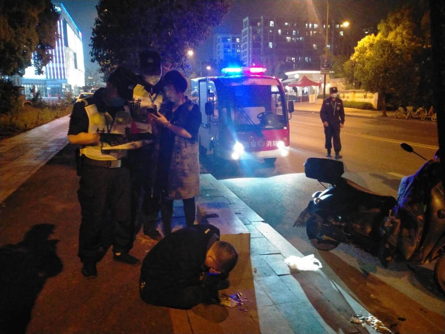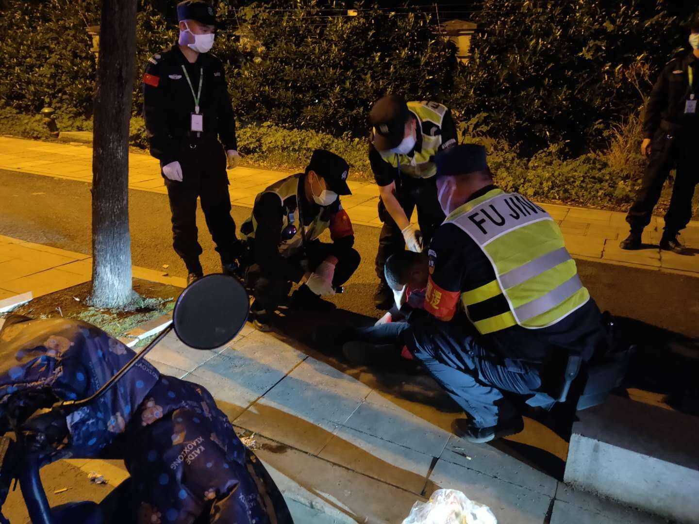 5月6日21:00左右,浙江民泰公司駐閑林輔警項目組長楊有福帶著隊員王發(fā)軍、郭虎虎在西溪歡樂城周邊巡邏防控時,在翡翠城華豐路路口發(fā)現(xiàn)一位大叔騎電瓶車摔倒在地。上前查看發(fā)現(xiàn)大叔醉酒,神志不清,還吐了一地。路上車來車往,存在很大的安全隱患,于是楊有福和隊員一起將大叔攙扶到路邊坐好,用大叔的手機聯(lián)系到其朋友童先生。