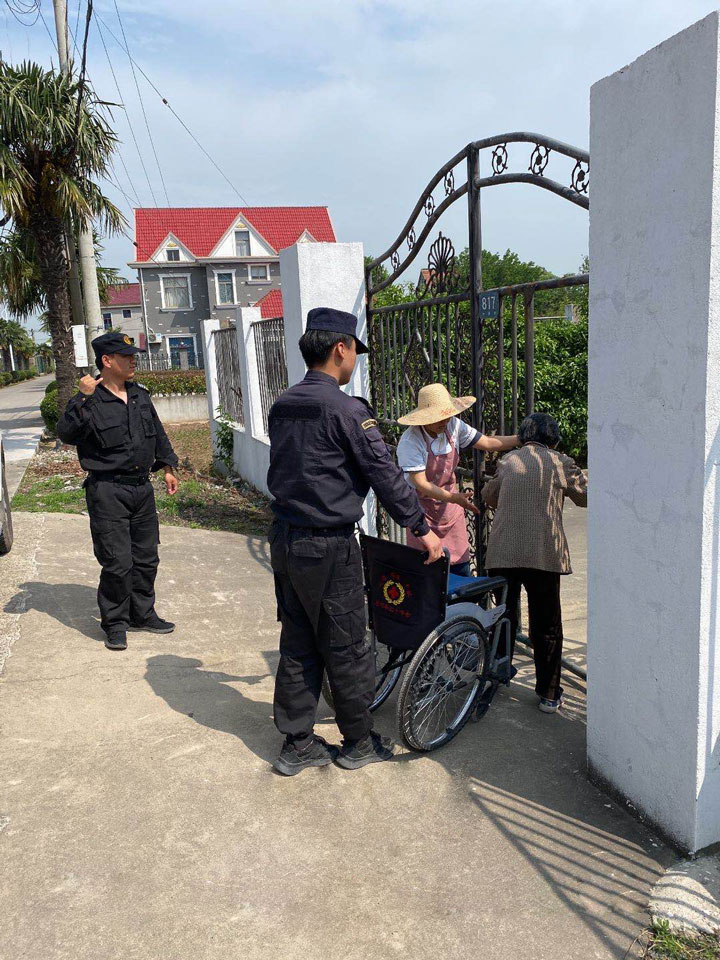 5月17日13:50,宗保公司駐崇明橫沙東灘項(xiàng)目馬成龍、馬志鵬等四名隊(duì)員,在巡邏途中發(fā)現(xiàn)一位坐著輪椅的老奶奶,東張西望,走走停停。憑借長(zhǎng)期的工作經(jīng)驗(yàn),幾位隊(duì)員斷定老奶奶可能是迷路了,而且家不會(huì)離得太遠(yuǎn)。