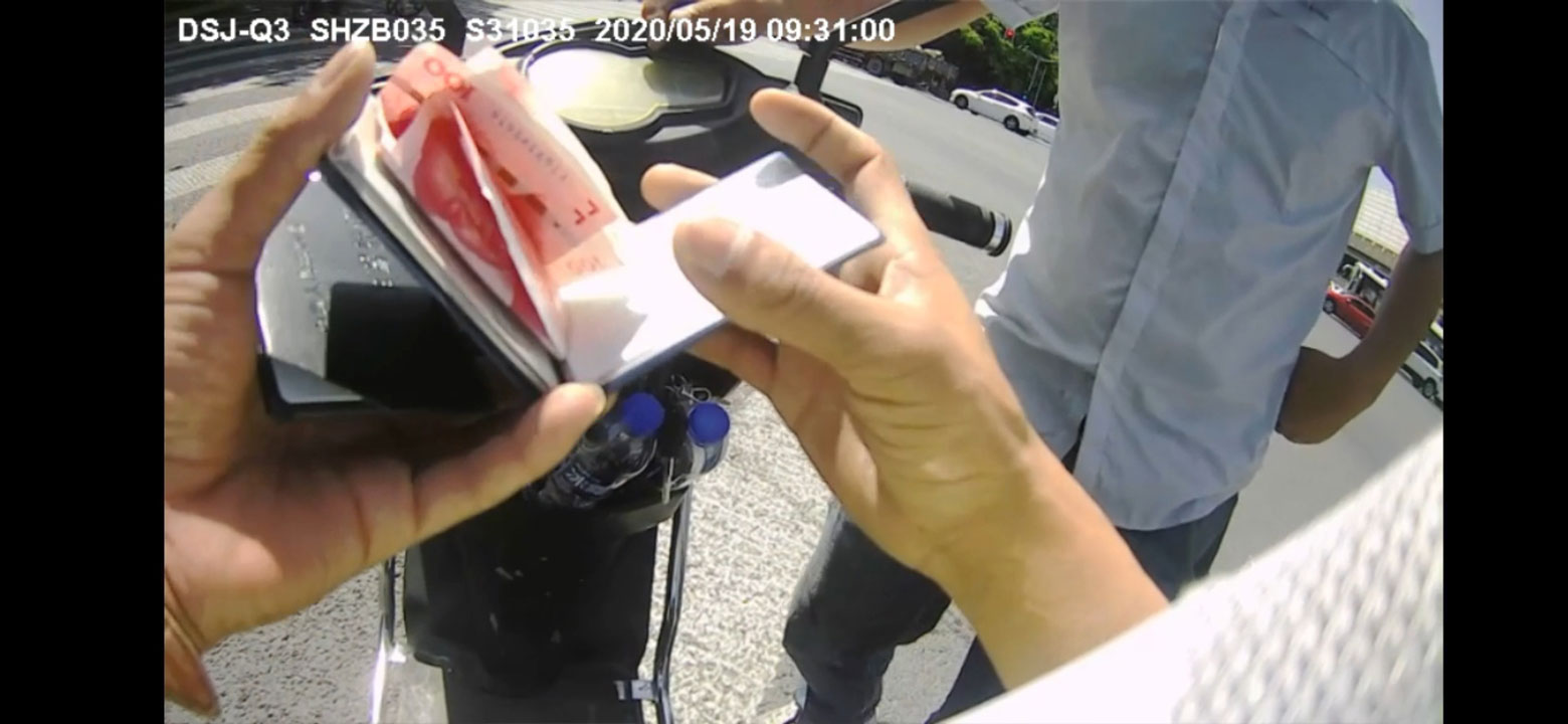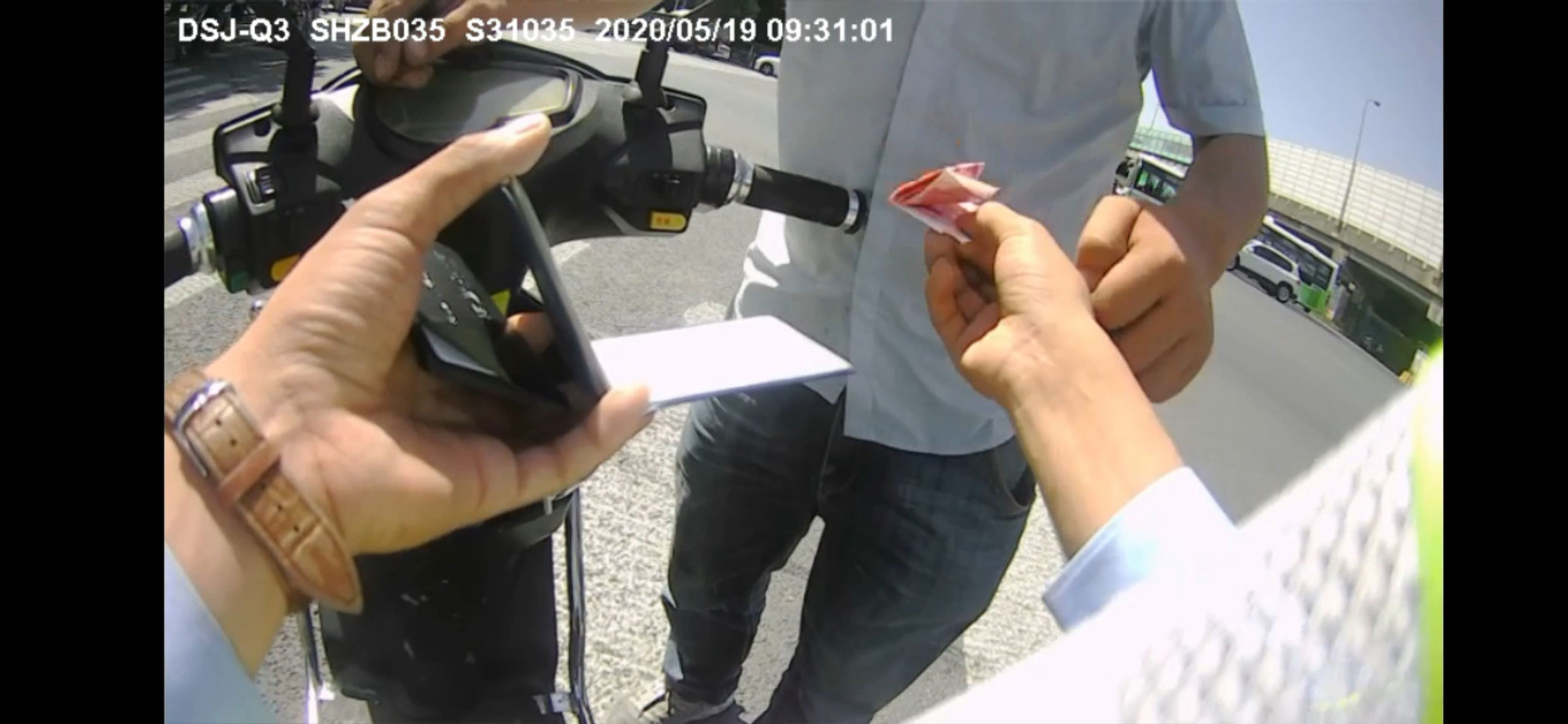 5月19日9:30,宗保公司駐閔行區(qū)域虹橋交通輔警項目副組長付光東,在顧戴路S20下口處配合民警進(jìn)行交通整治過程中,一名違章的機(jī)動車駕駛員在行駛證中夾帶了200元現(xiàn)金,希望付光東“高抬貴手”對其違法行為網(wǎng)開一面。付光東對該駕駛員的賄賂嚴(yán)詞拒絕,并將該駕駛員的行為上報現(xiàn)場民警。