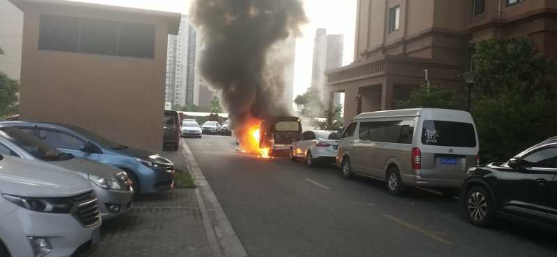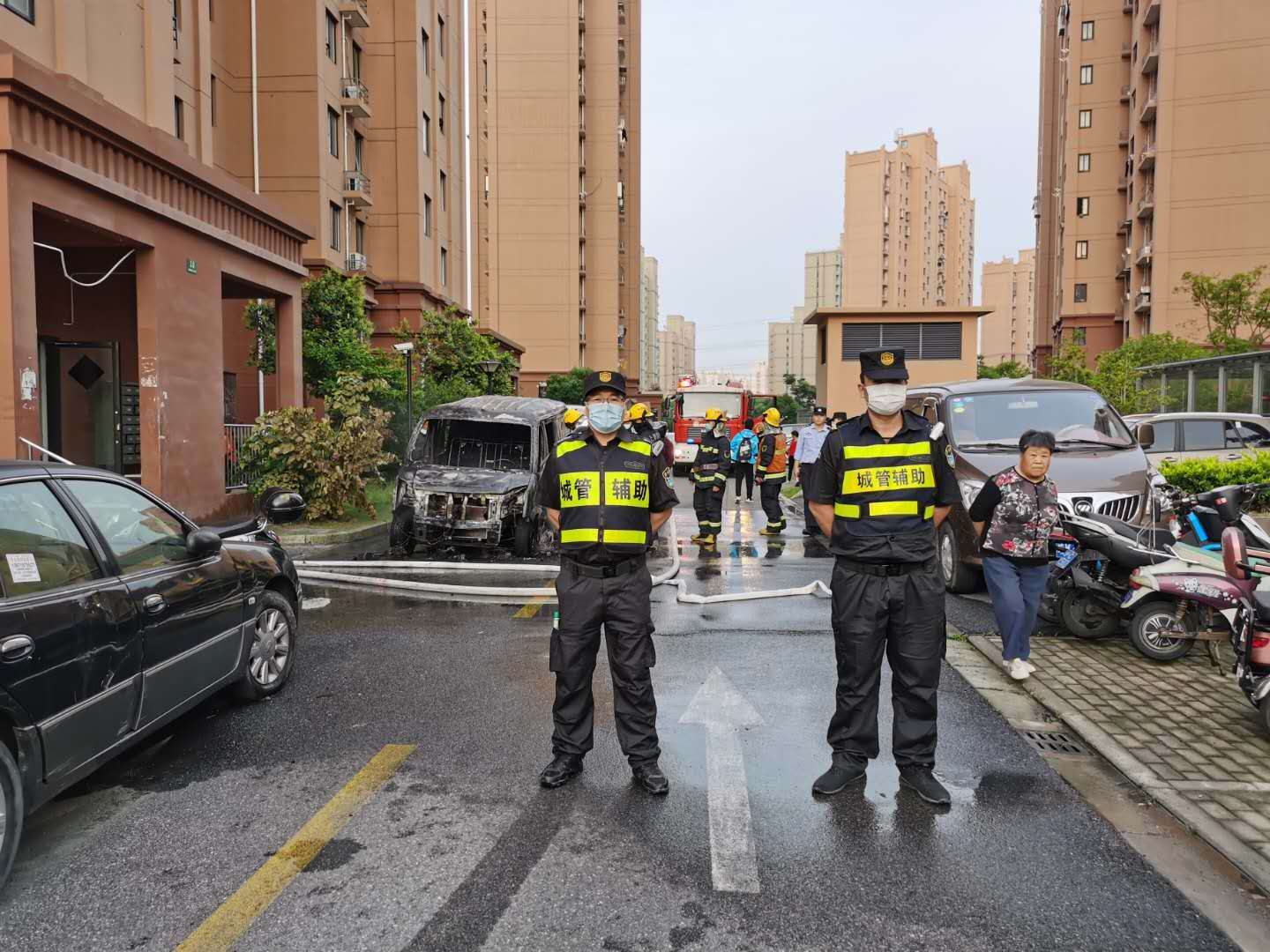 6月2日4:40,宗保公司駐周浦市容項目隊員胡德良在周陽路泰豐里小區(qū)巡邏時,發(fā)現(xiàn)一輛新能源汽車起火,現(xiàn)場濃煙滾滾,火勢較大。而且旁邊還停有幾輛汽車,一旦發(fā)生爆燃,后果不堪設(shè)想。事不宜遲小胡急忙撥打119報警,并向當(dāng)班組長報告要求前來支援。