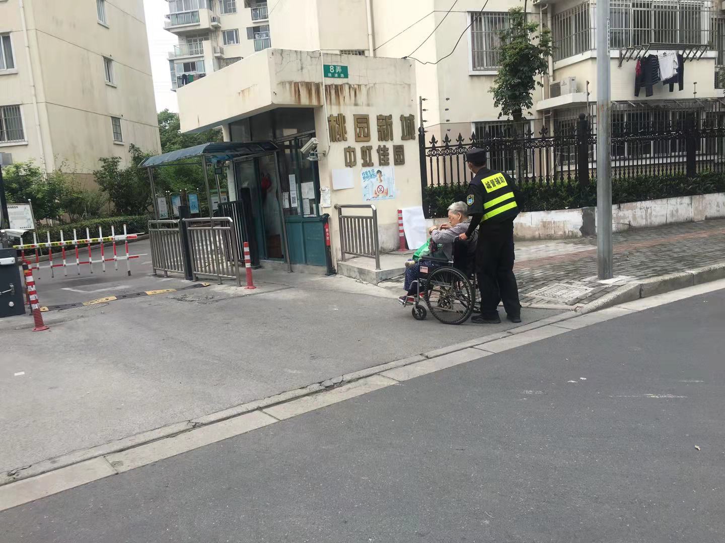 兩位隊員見此情景,主動上前詢問老人是不是找不到回家的路了,老人年齡比較大,腿腳不靈便,頭腦也不是很清楚,一口濃濃的上海郊區(qū)口音。兩位隊員耐心地和老人反復(fù)溝通后,才得知老人家住九華苑,獨自外出時間久了找不到回家的路。
