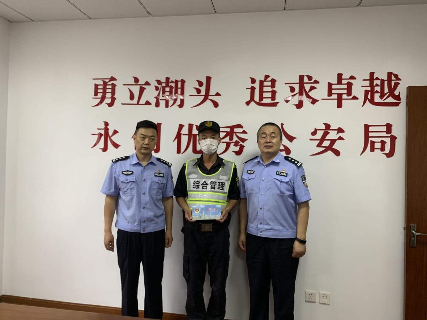 6月29日,浦東分局和陸家嘴派出所相關(guān)領(lǐng)導(dǎo)來到宗保公司駐陸家嘴綜合管理項(xiàng)目,對(duì)在6月23日配合民警執(zhí)勤中受傷的隊(duì)員付紹祥進(jìn)行慰問,并送上2000元慰問金。