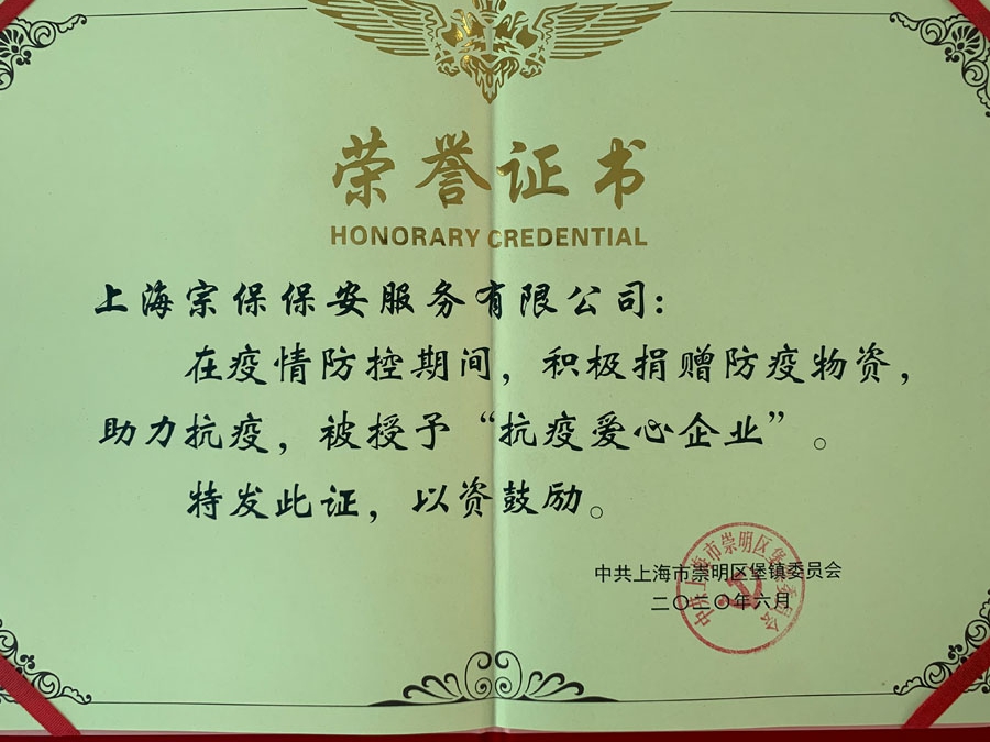 7月1日,崇明區(qū)堡鎮(zhèn)舉行紀念中國共產(chǎn)黨成立99周年大會。上海宗保保安服務(wù)有限公司當選為堡鎮(zhèn)“抗疫愛心企業(yè)”,崇明區(qū)域經(jīng)理馬應(yīng)龍上臺領(lǐng)獎。