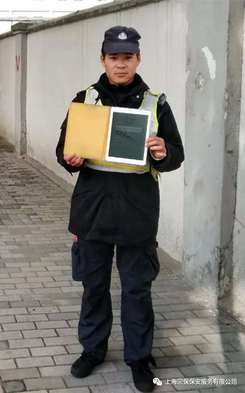 高行基地報道:2017年11月25日,我公司陸家嘴綜合管理項目禁非班組隊員在日常工作中撿到蘋果ipad一臺,立即將情況報告帶班副隊長余澤權,并將失物交給了值班崗亭民警處理。
