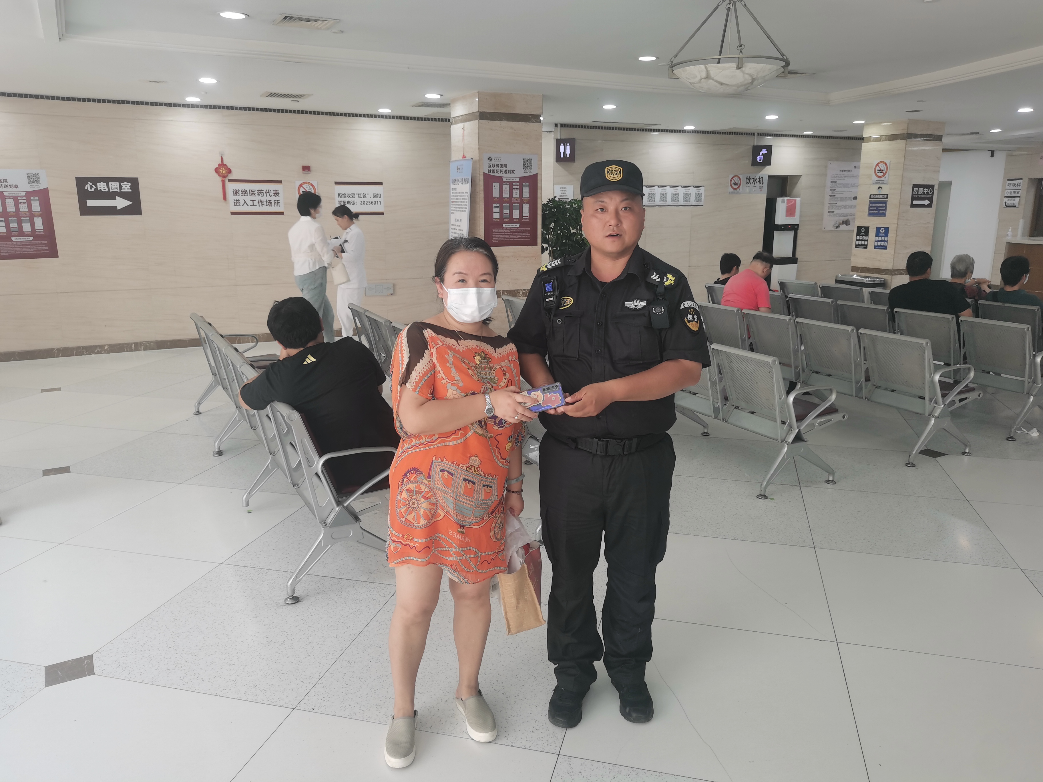 6月27日14:40,宗保公司駐浦東新區(qū)曙光醫(yī)院東院項(xiàng)目員工董啟義在醫(yī)院科苑路5號(hào)門巡邏時(shí),撿到一部華為手機(jī)。董啟義立即報(bào)告了班組長(zhǎng),并在原地等待失主。